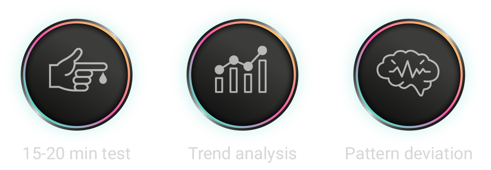 Professionals can analyse users’ results relative to personalised norms, triage, and flag concerning trends